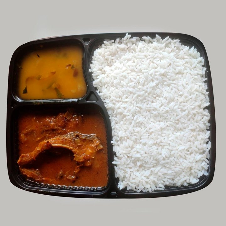 Chef’s Special Home Style Cooked Rohu Fish Curry [2 Pieces] + Semi Thick Gravy + Dal Tadka + Rice